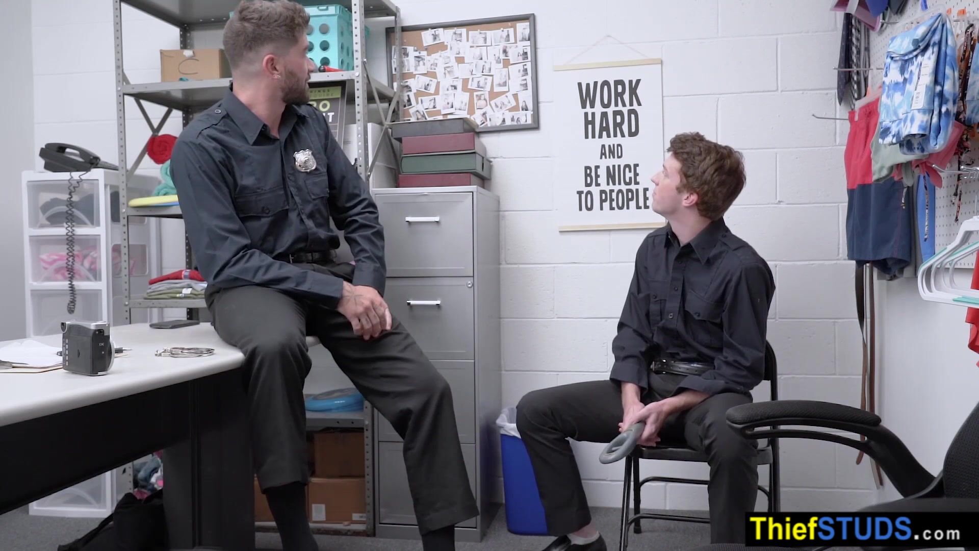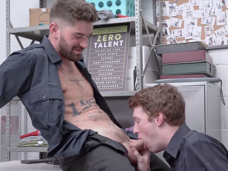 Straight security guards Chris Damned and Sebastian Hunt get super bored at work they confess to each other some naughty things they have done alone what make them horny so the teen sucking his partners big dick and lets him to fuck his ass bareback