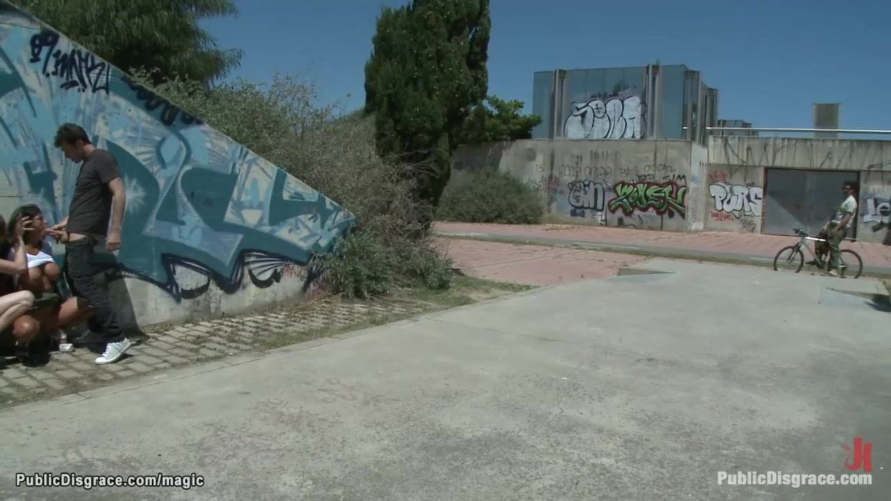 Princess Donna Dolore holds for head big boobs hot Latin babe Yoha Galvez while she is sucking huge dick to James Deen in public in the middle of the day