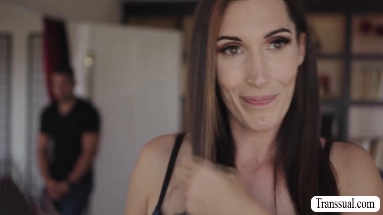 Handsome dude goes to the house of his shemale stepmom and instead of going to the party.Busty shemale throats his hard big cock passionately and in return,her stepson bareback fuck her tight wet ass so deep and hard.