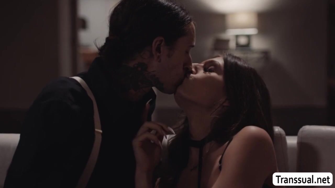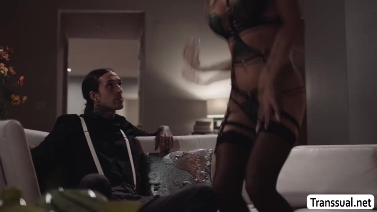 Wet ass shemale wear a seductive lingerie and she then start kissing her full of tattoos boyfriend.After that,busty TS goes down and throats his big cock passionately.In return,the dude barebacks her tight ass so deep and hard.