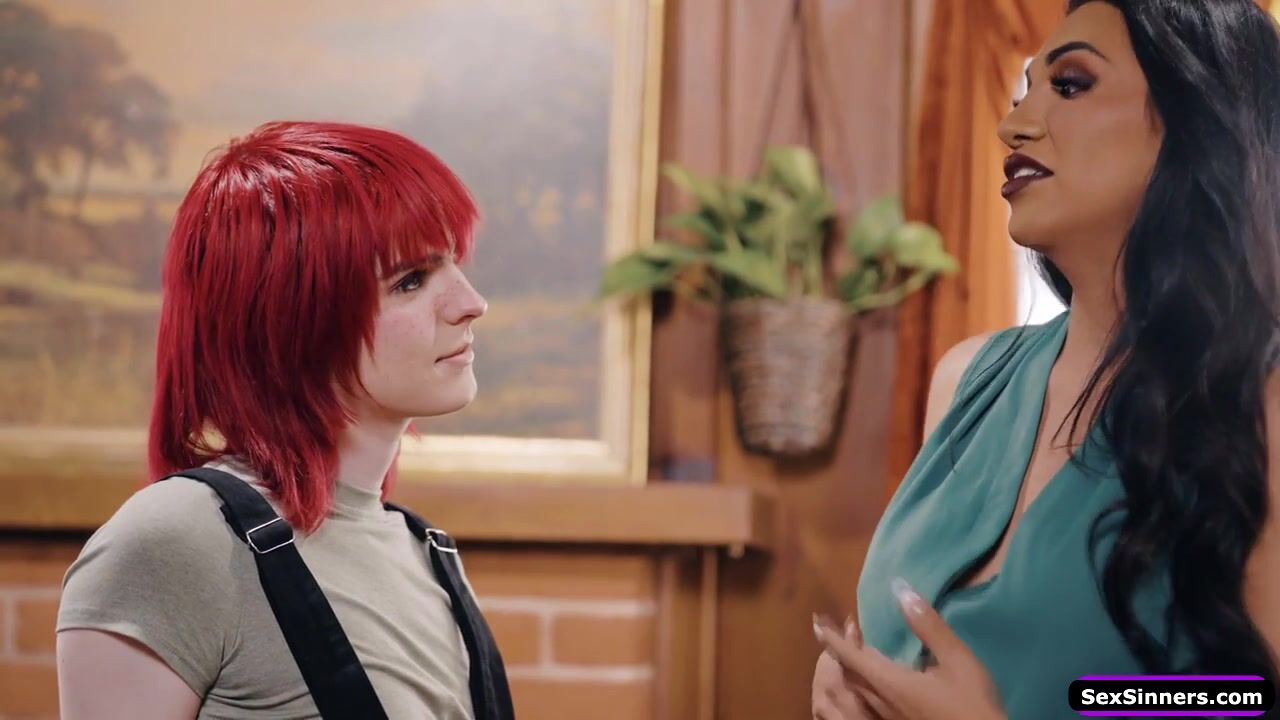 Big tit shemale barebacks tgirl babysitter and husband joins