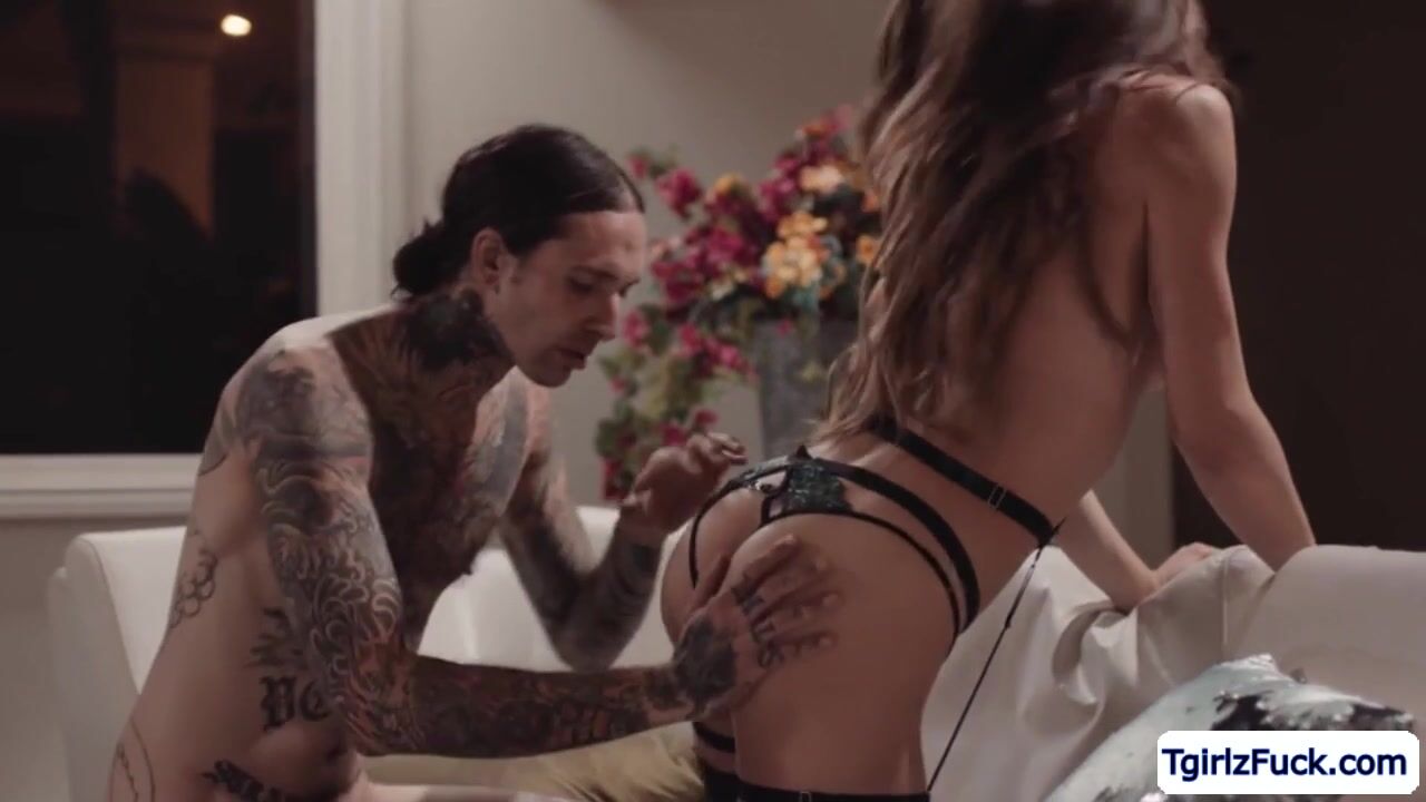 Tall and big boobs shemale Jade Venus goes with hunk date in her bedroom to enjoy his big cock up her ass. The brunette ladyboy trades deepthroat blowjob with him before her gaping ts asshole enjoys hardcore barebacked anal doggystyle in the bedroom.