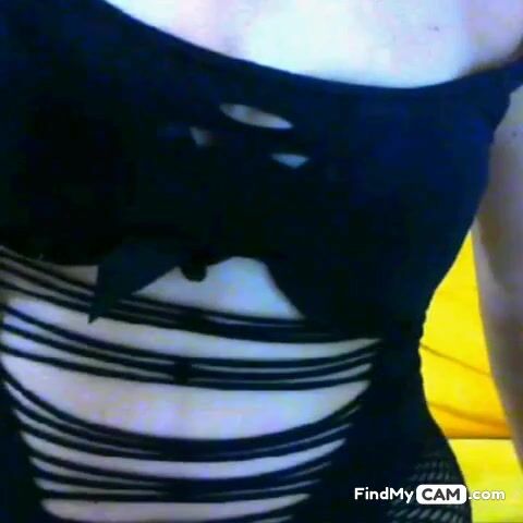 Young blackhair girl with big tits is shy on webcam