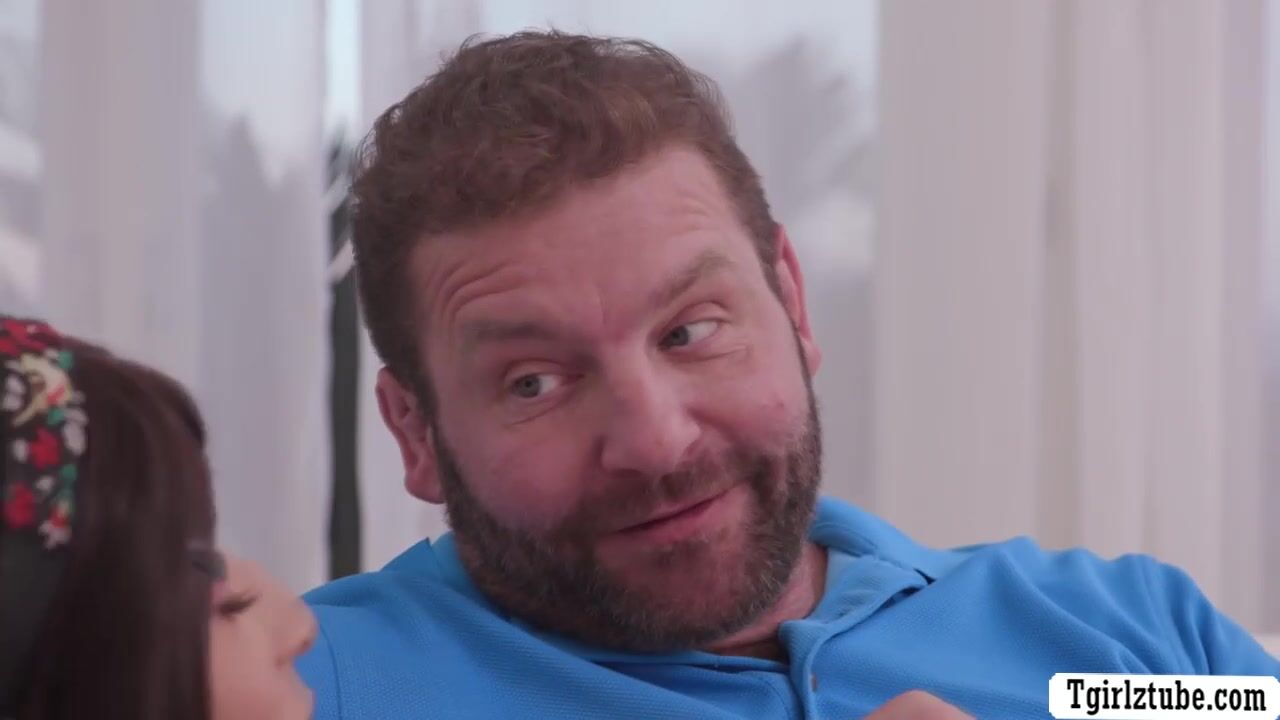 Sexy brunette shemale and her stepdad are on the couch watching tv.After that,TS babe gets horny and starts throating her stepdads big cock passionately.In return,her stepdad licks her ass first and he then barebacks it so deep and hard.