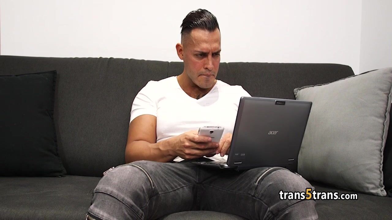 Sexy stockings shemale callgirl with big tits got her tranny hole rimmed by horny guy then deep and hard fucked on couch after she gave him blowjob