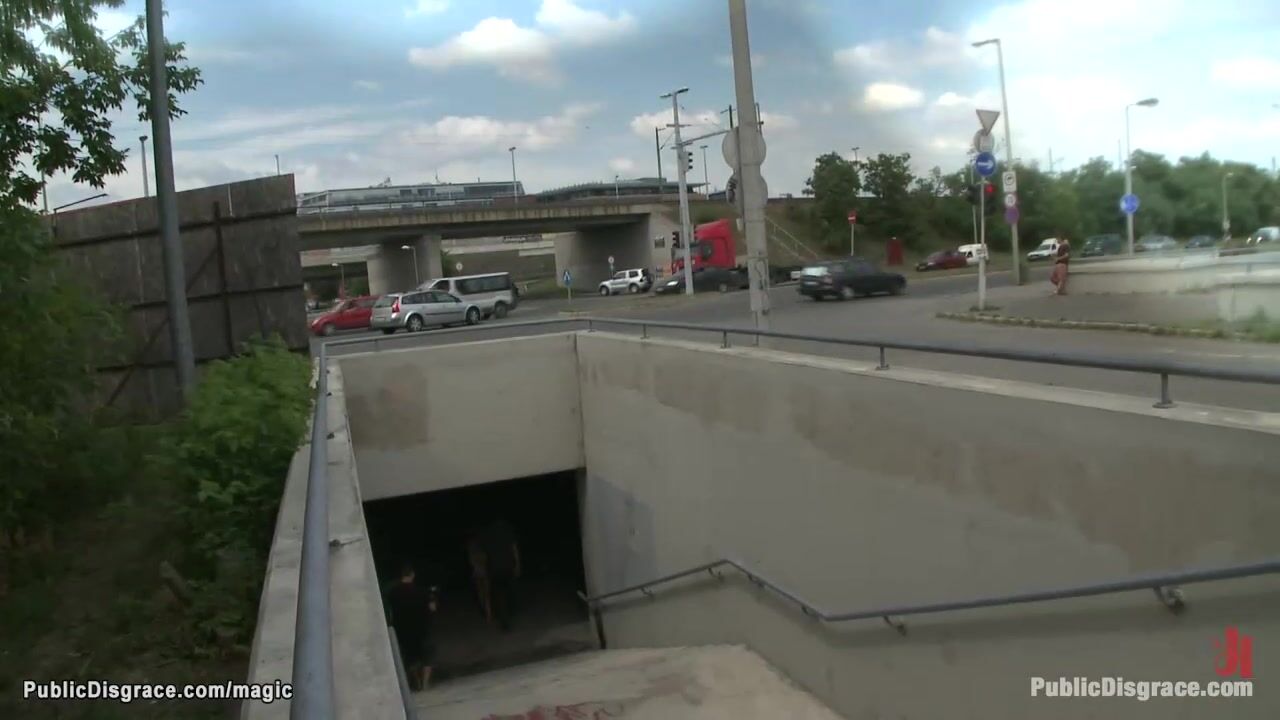 Big tits Romanian slut Alice Romain is humiliated in public streets as human ashtray then skull fucked by huge dick master Steve Holmes