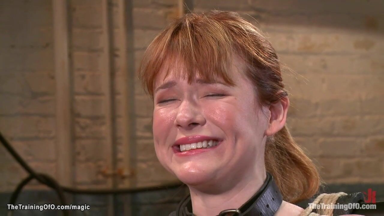 Bound trainee Claire Robbins sitting with vibrator between legs gets whipped then trapped head in board hole gets double penetration fucked by big dick Owen Gray and dildo