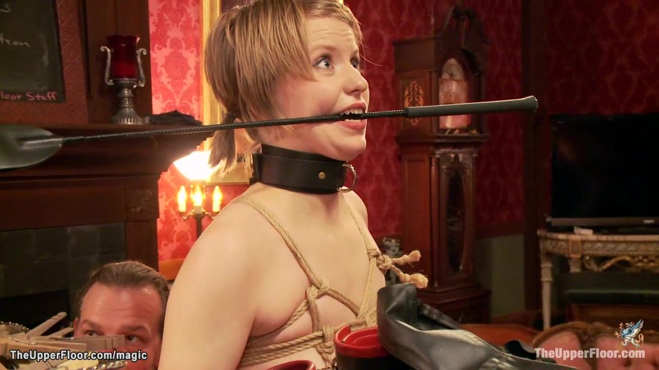 Natural big boobs blond MILF Aiden Starr disciplines sexy service slaves Alani Pi and Beretta James with whip and strap on cock at orgy party in the Upper Floor