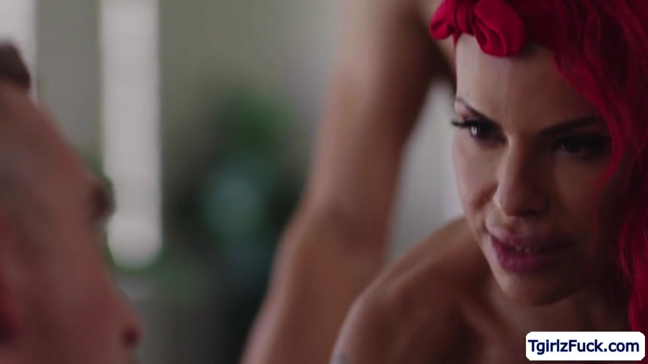 In the couch, big tits ts stepmom Foxxy lets her husband watch as she fucks her stepson. The busty shemale take turn giving ones big cock deepthroat blowjob before she stretches asshole to take his dick for a hardcore bareback anal session doggystyle.