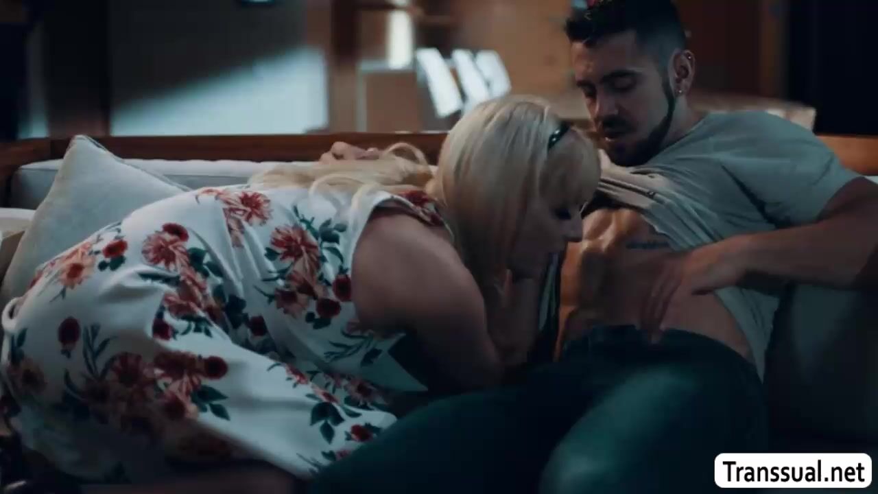 Trans stepmommy helped by her handsome stepson find her lost wedding ring.After they find it,they start kissing each other on the couch and she then throats stepsons big cock passionately.In return,stepson bareback fucks her tight ass so hard.