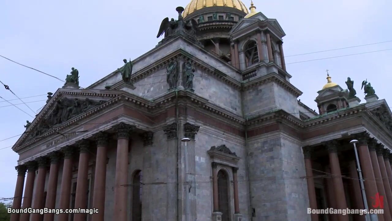 After shower big boobs blonde babe Dominica Phoenix walk around the city then dragged in white room and double penetration and gang bang fucked by huge dicks