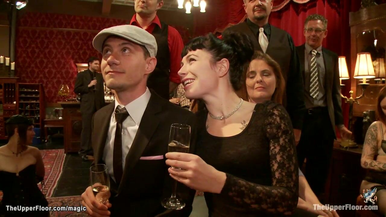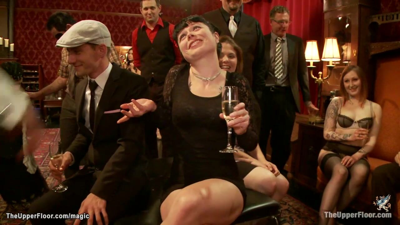 Three hot slaves Claire Robbins and Penny Barber and Danny Wylde are bound and humiliated then fisted and made squirting at bdsm orgy party in the Upper Floor
