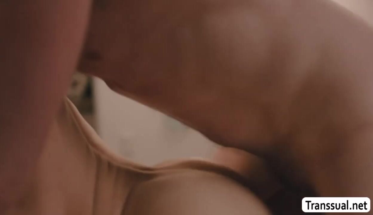 Busty TS and her new handsome boyfriend gets home after they party.After that,they get so horny and start kissing each other on the bed.After that,she throats her new boyfriends big cock and lets him bareback fuck her wet ass so hard.