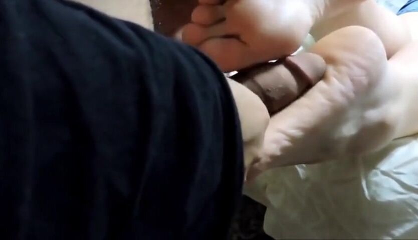 Amazing feel fucking her wrinkled soles and feet and spraying her soles with loads of cum
