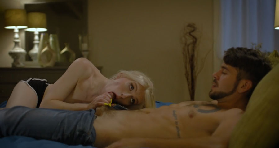 Horny stepbro closes the door of his shemale stepsister and then they start kissing each other on her bed.After that,he lets her throats his hard big cock passionatel and in return,he bareback fucks her wet ass so deep and hard.
