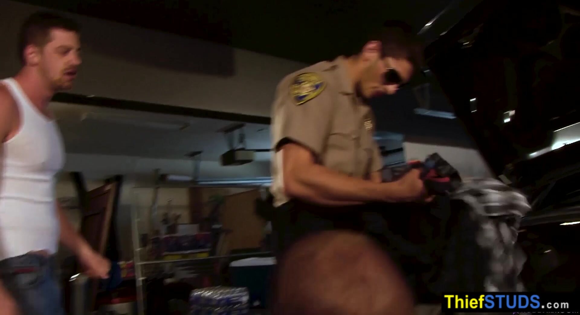 Two dirty gay cops Tyler Torro and Andrew Star catching a muscle teen perp Rod Daily and take him to a garage where the big cocked cops fucking his face and his butt bareback