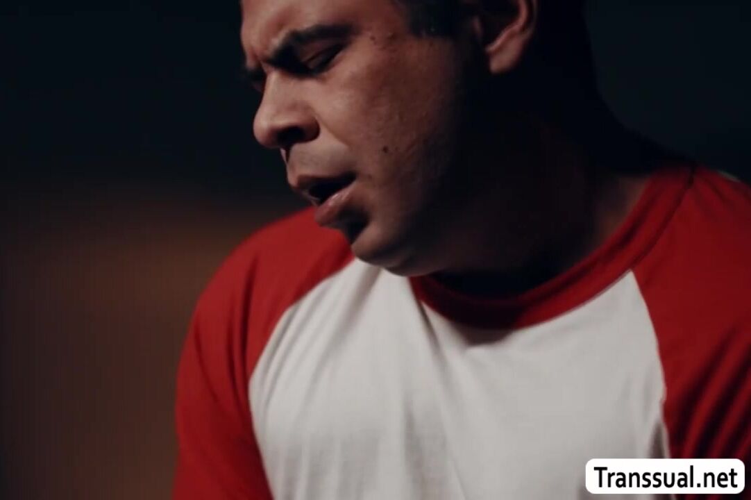 Horny stepbro jerks off his big cock while watching his TS stepsister taking a nap.After that,his TS stepsister goes to his room and they start kissing each other.Next is,he lets her throat his fat cock and in return,he barebacks her wet ass.