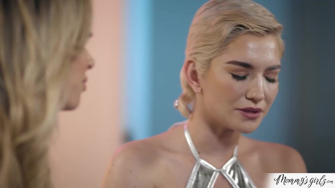 Busty tattooed stepmom Brooke Banner is talking to her lesbian stepdaughter Skye Blue.The big tits milf and the teen start to kiss and titsuck each other.The horny babe licks and fingers the cougars pussy.They switch to 69 positions until they reach their orgasm.