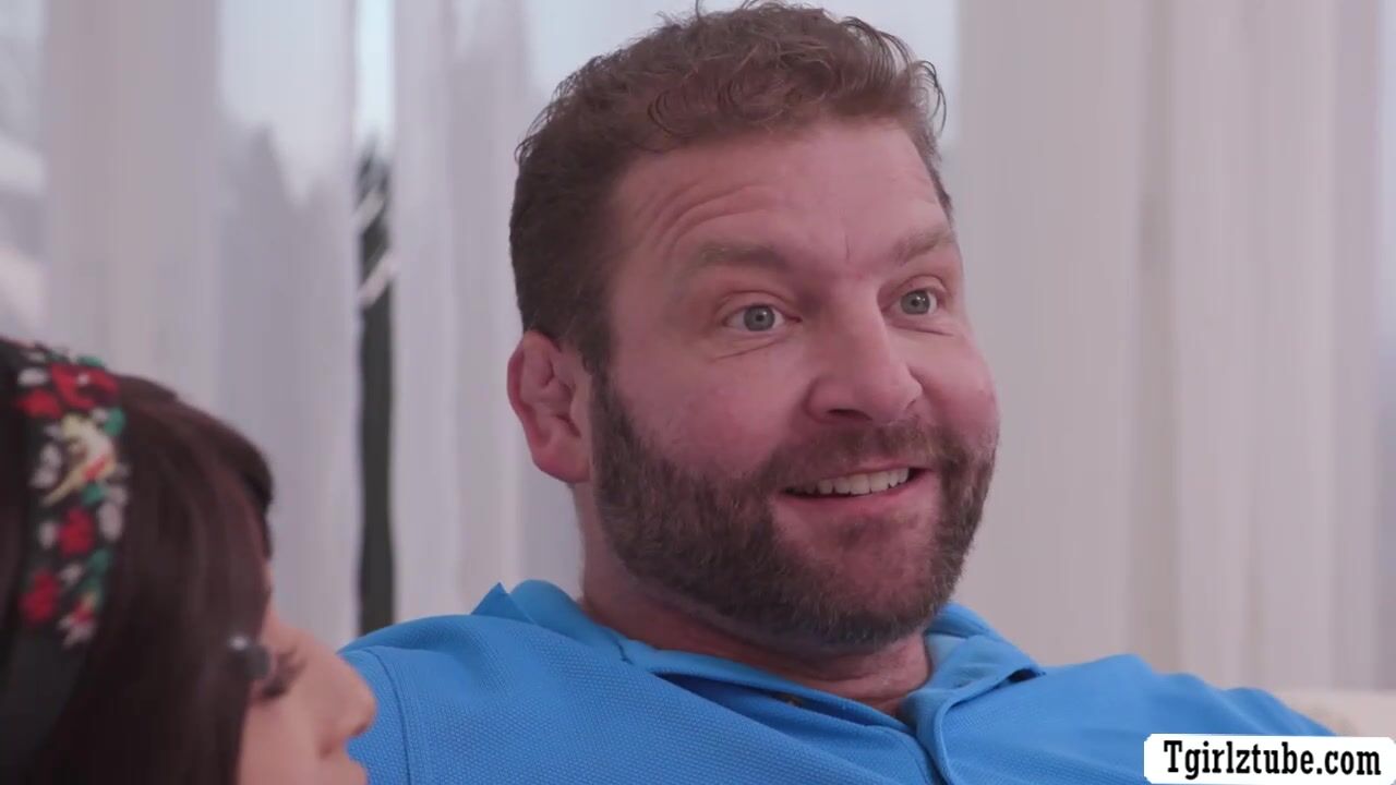 Busty TS and her stepdad are on the couch kissing each other.After that,TS brunette throats the big hard cock of her stepdad and in return,her stepdad bareback fucks her tight wet ass so deep and hard.