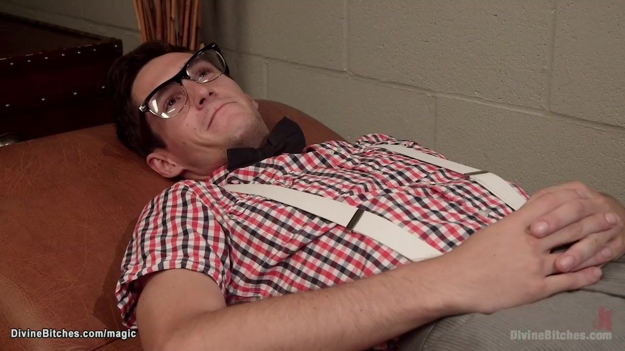 Ebony therapist Lotus Lain after therapy makes cuckold patient Tony Orlando suck cock to Rob Yaeger then fucks over his face in threesome in dungeon