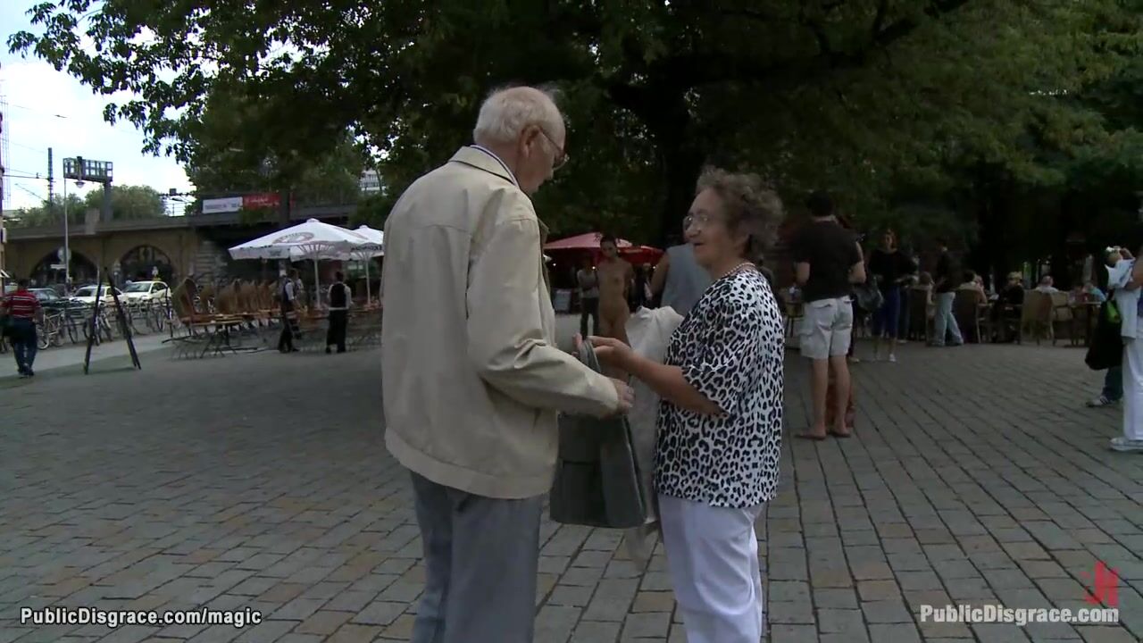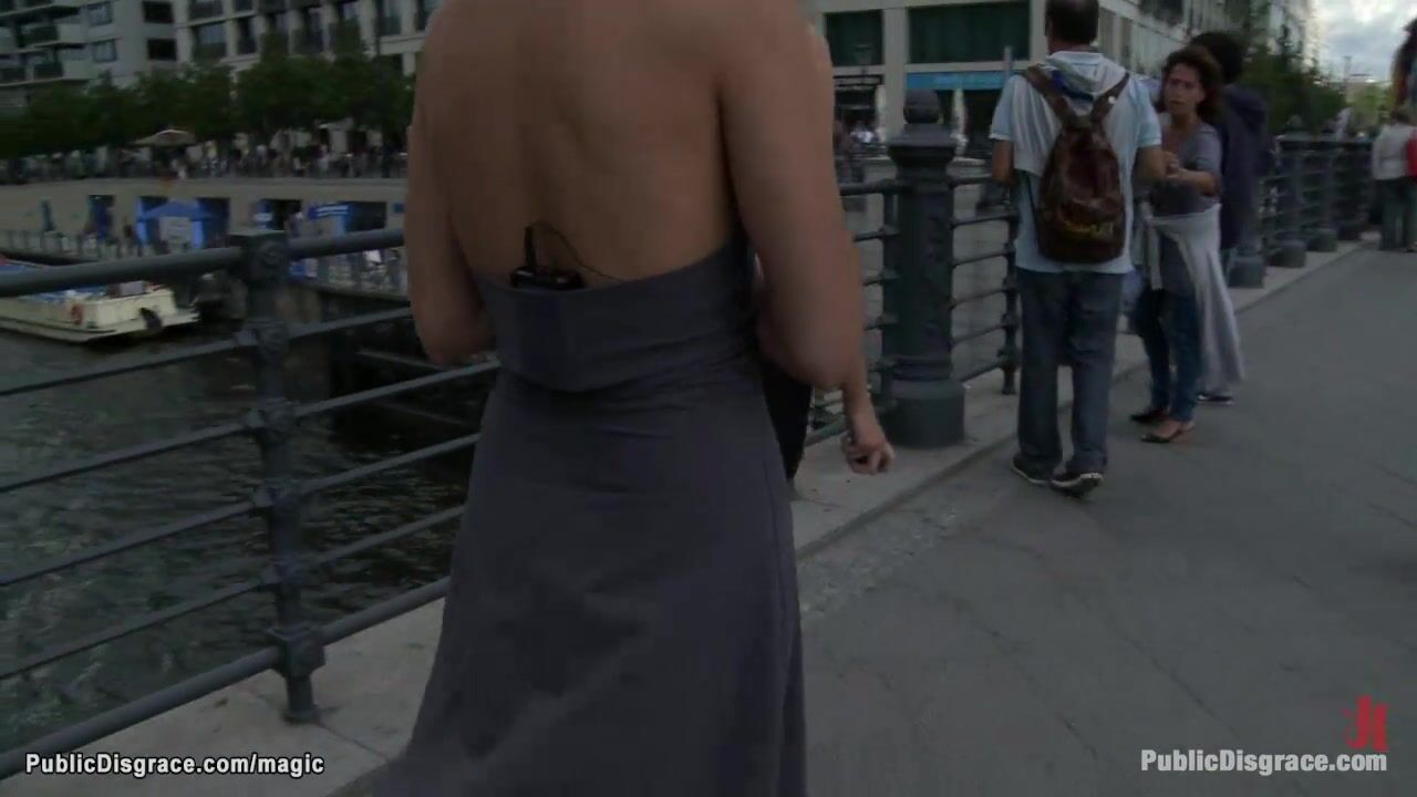 Hot German brunette slave Black Lady walked bound and naked in public by Princess Donna Dolore then bound in arm leather binder fucked by big cock Tommy Pistol