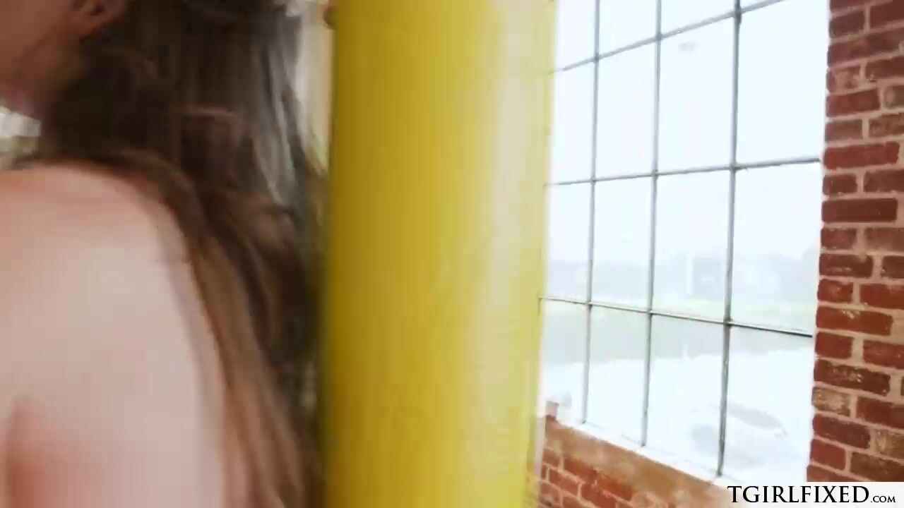 Busty brunette shemale Jade Venus and her partner Chris Damned are touring the new space.The horny partners cant hold anymore,they exchange kisses while stripping their clothes.They trade blowjobs and then he bareback anal fucks her.