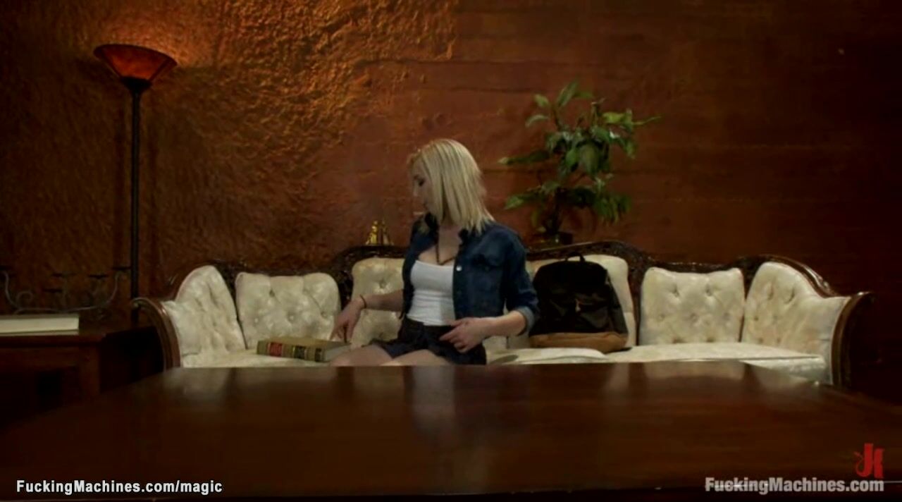 Blonde fucking machine on the couch