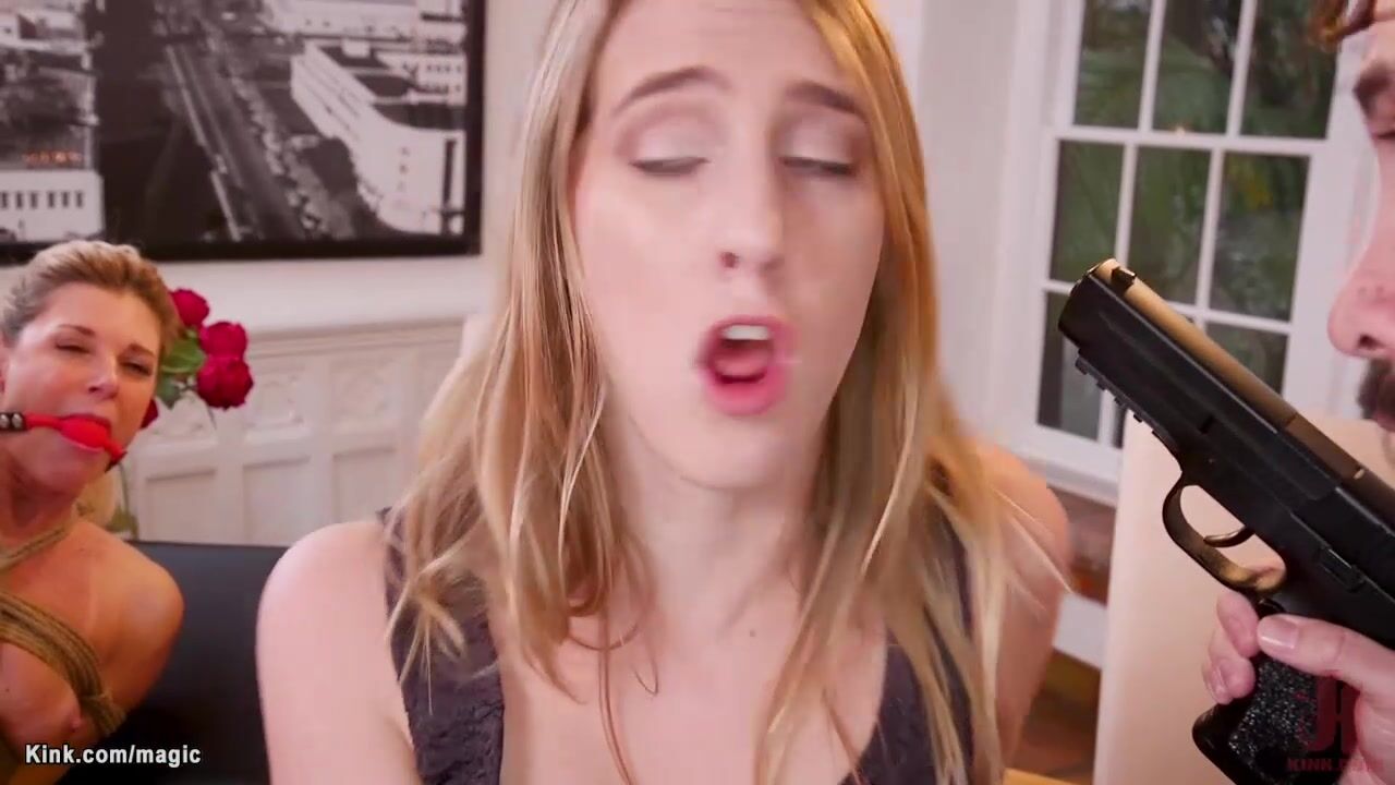 Sumuggler Tommy Pistol point gun in MILF stepmom India Summer and then binds her with girlfriend Cadence Lux and anal fucks them with big cock in threesome family roleplay
