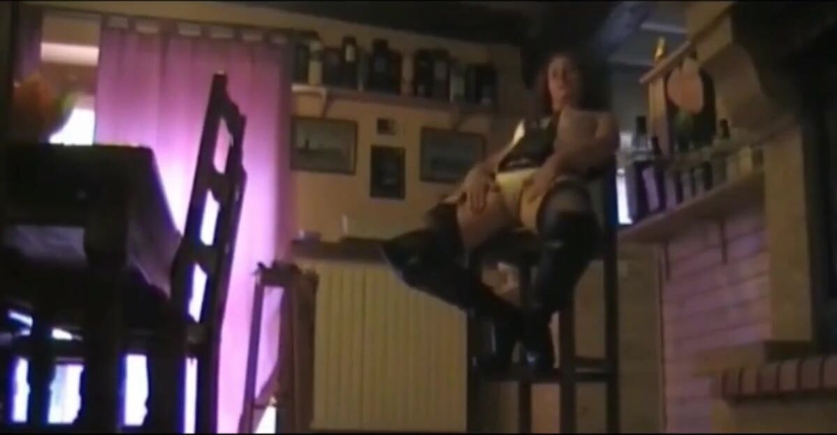 Petite brunette gets licked and fucked in public at a party