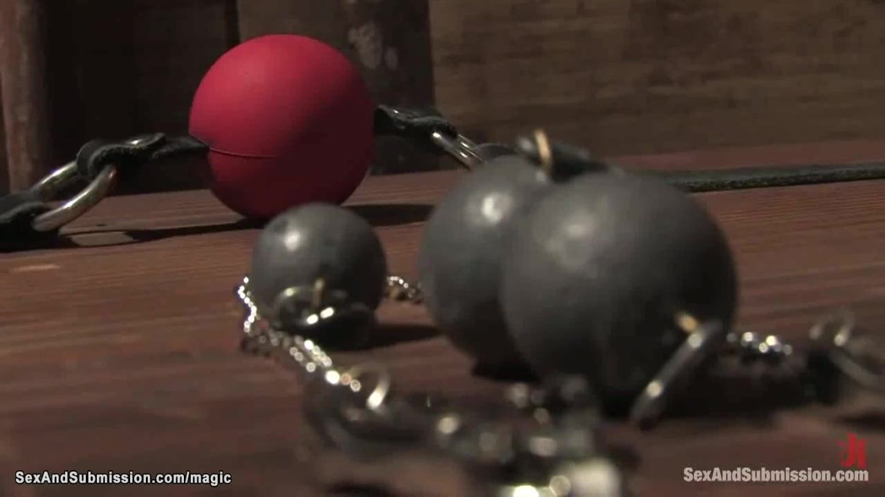 Bound and blindfolded huge boobs MILF redhead Mz Berlin gets face slapped then bent over with hands in strappado ass plugged and mouth fucked by big cock old master Mark Davis