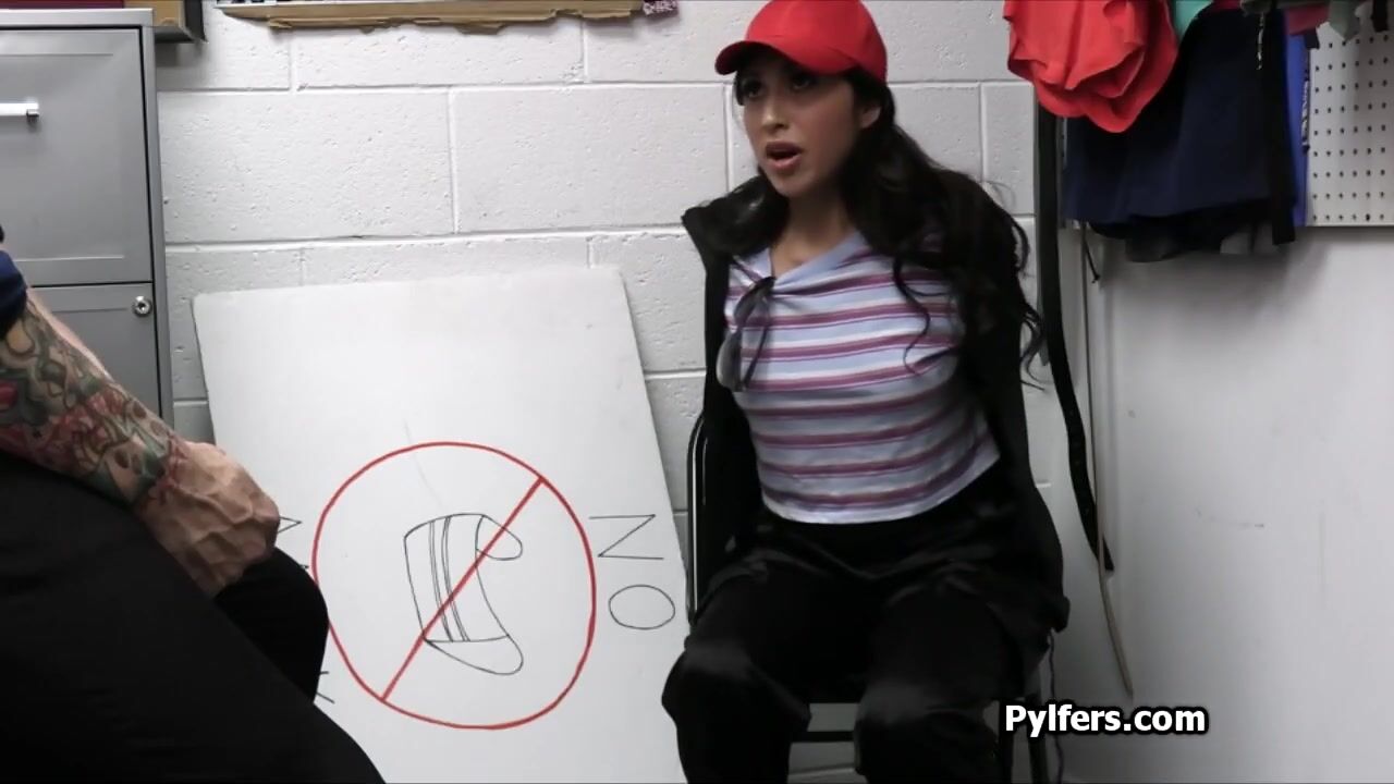 Super hot Latina babe Penelope ends up in the backroom for questioning and cavity search. But the guard got super horny for her pussy.