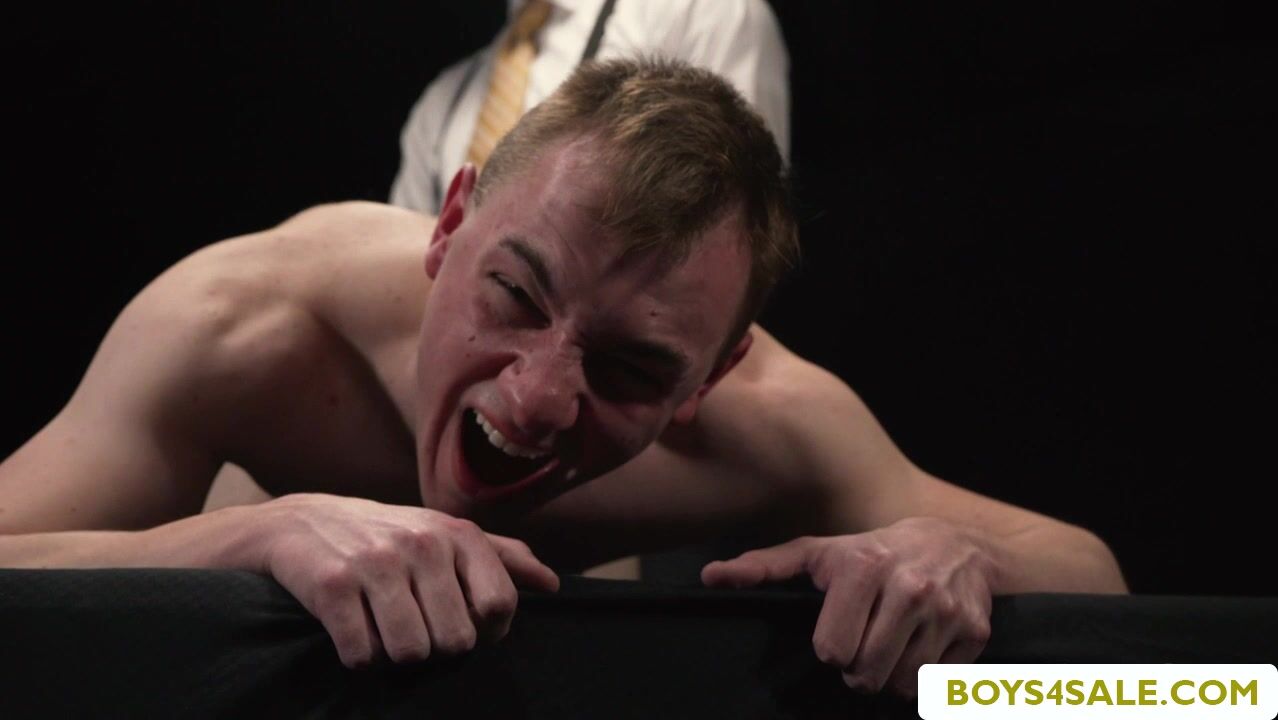 Big slave merchant Legrand shows his new gay slave to client