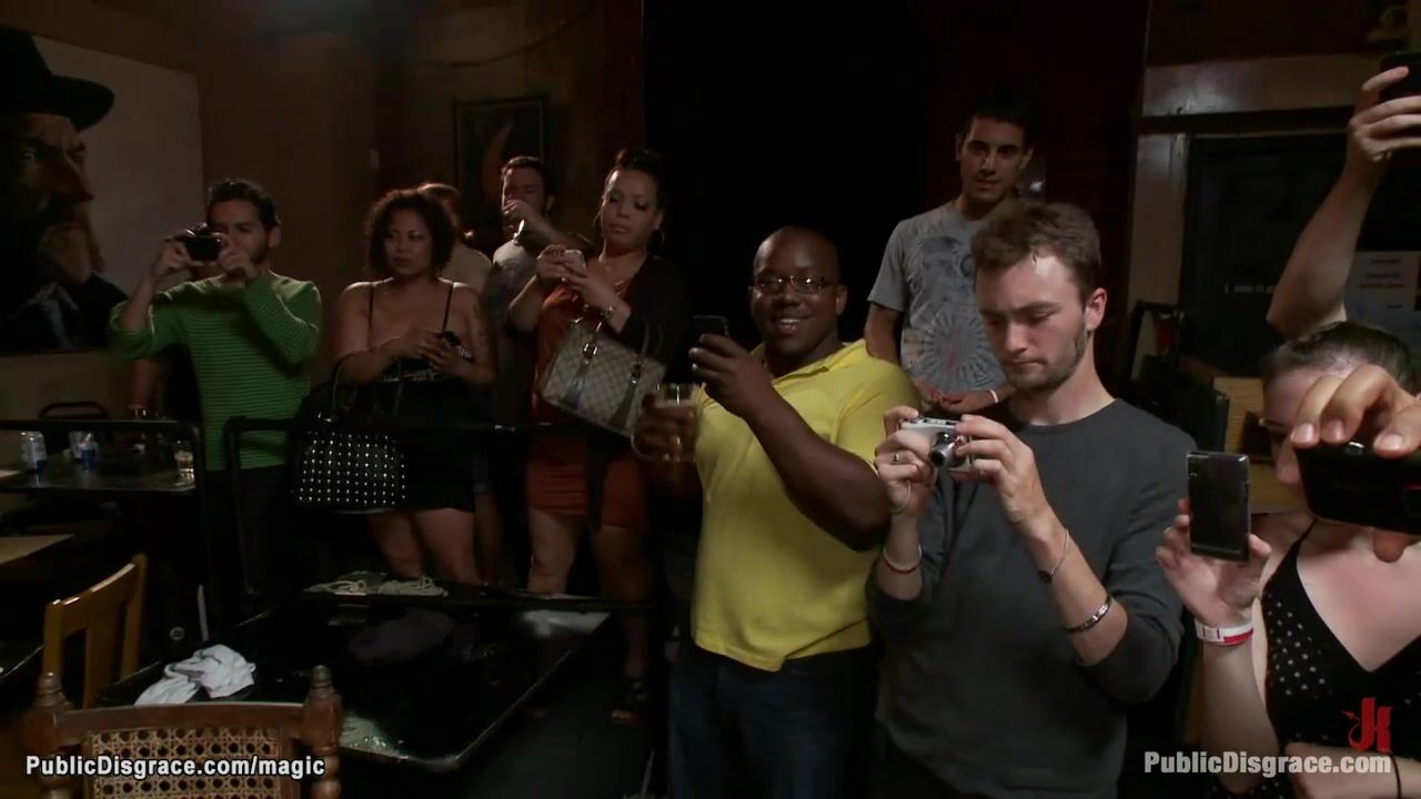 Dirty brunette babe Aria Aspen is bound and bent over pool table then rough fucked by big cock Mr Pete from behind in crowded public bar