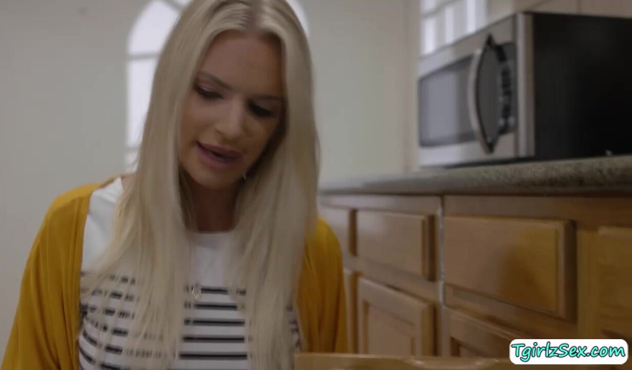 Tall blonde shemale Emma Rose pulls the pants down of the hunk plumber and gives his big ass a rimjob and his huge dick a deepthroat blowjob. The small tits tbabe stretches his asshole for a hardcore doggystyle and missionary anal bareback while masturbating tranny dick.