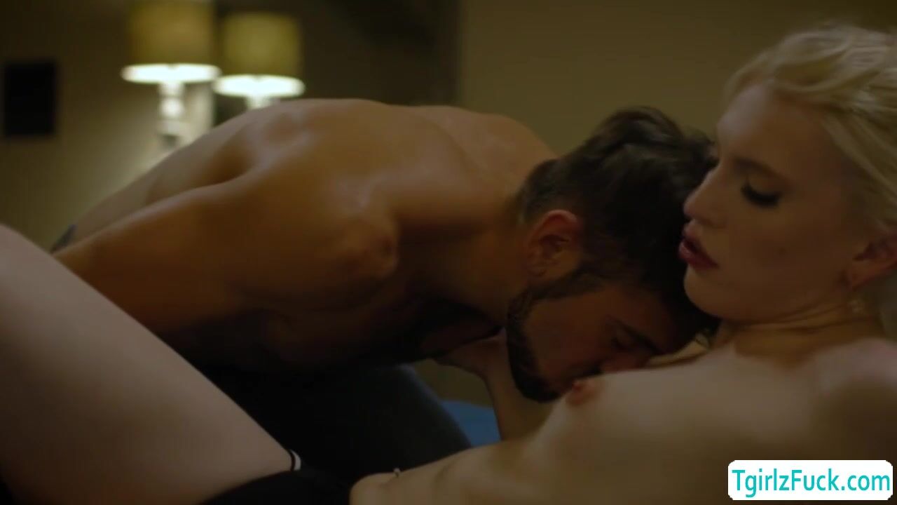 Tall brunette shemale Izzy Wilde passionately kissing hunk stud then take turn blowjob deepthroat big cocks. The small tits tbabe stretches huge asshole for a hardcore anal barebacked doggystyle and missionary while masturbating her huge tranny dick.