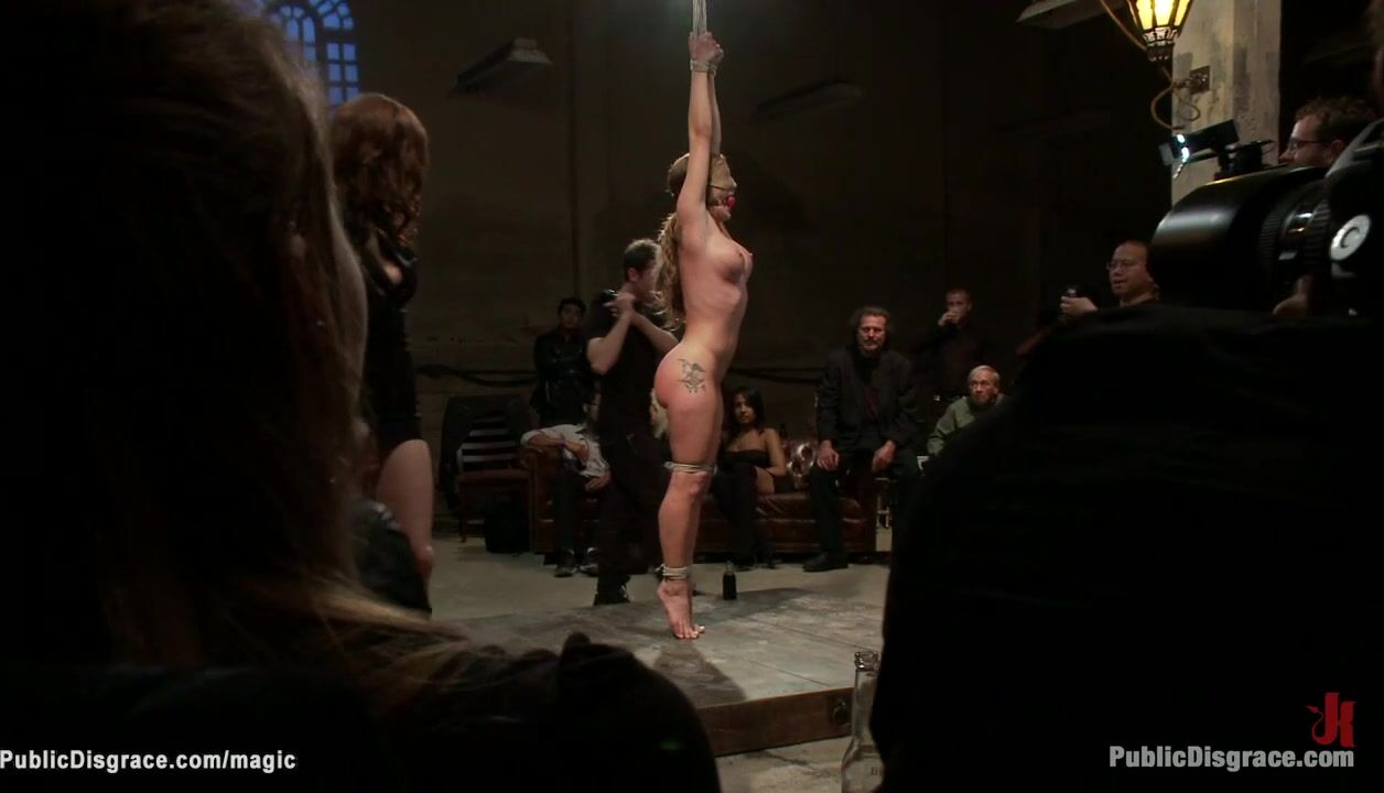 Big tits brunette babe Amy Brooke gets bound and hard whipped then ass hooked and pussy fucked by big dick James Deen in crowded public place