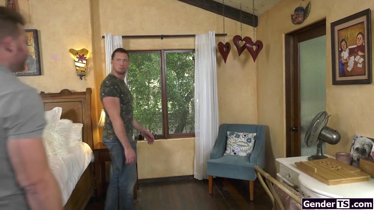 Busty tgirl stepsis Angelina Please is now her stepbros fiancee and he arranged a threesome with his stepdad.The big tits shemale sucks their big cocks and is rimmed before anal fucked.The blonde tattooed trans gives a blowjob while barebacked