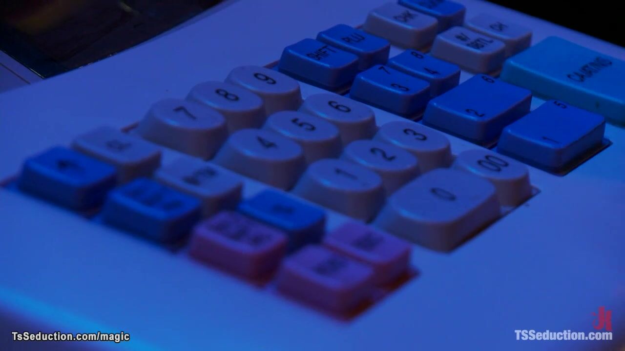Big tits brunette shemale guest Morgan Bailey seduces bartender Chris Ockham and wanks his dick till he cum then anal fucks him on table after closing time