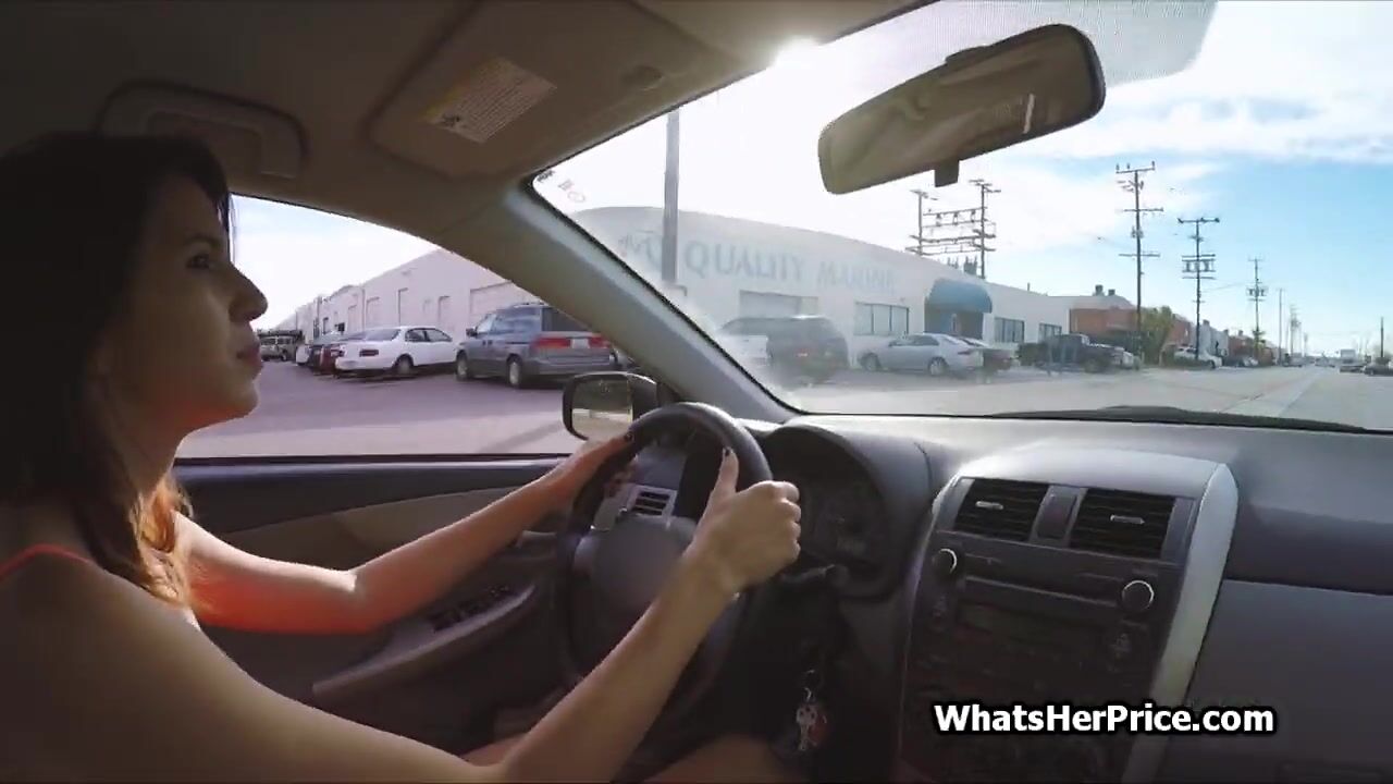 Sexy big tit taxi driver does extra on the job