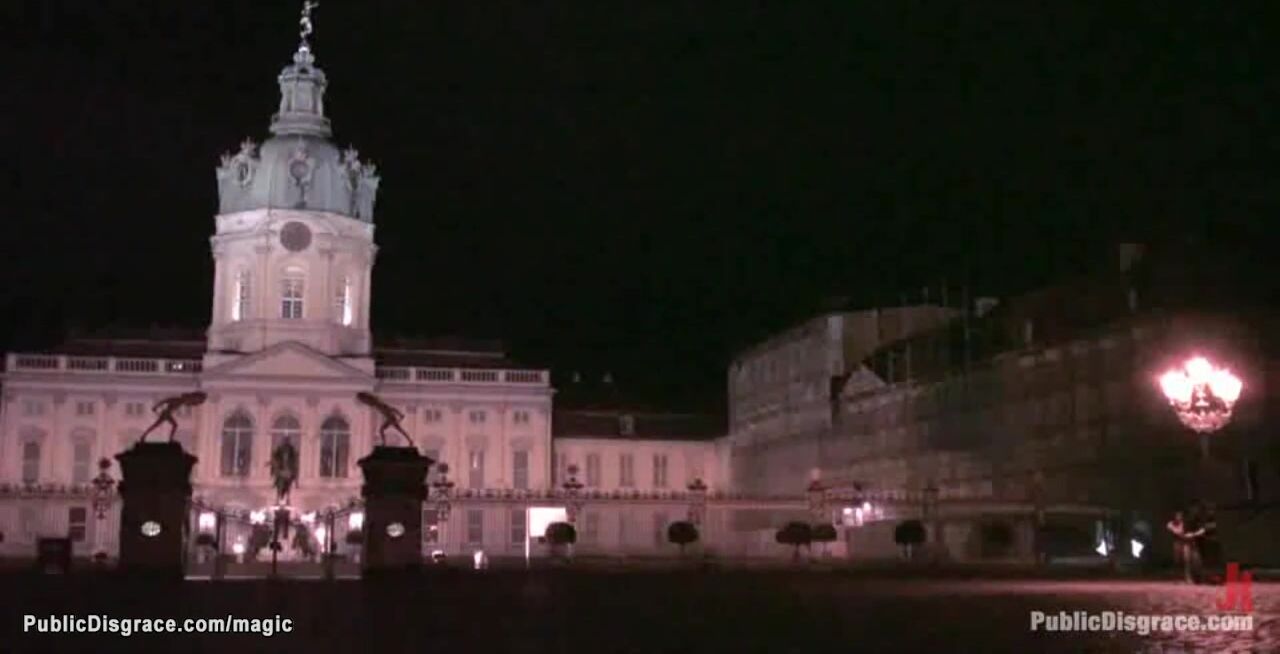Hot Czech slave Gioia Biel gets bound by mistress Princess Donna Dolore and walked bare boobs around city at night then public fucked by huge cock Steve Holmes